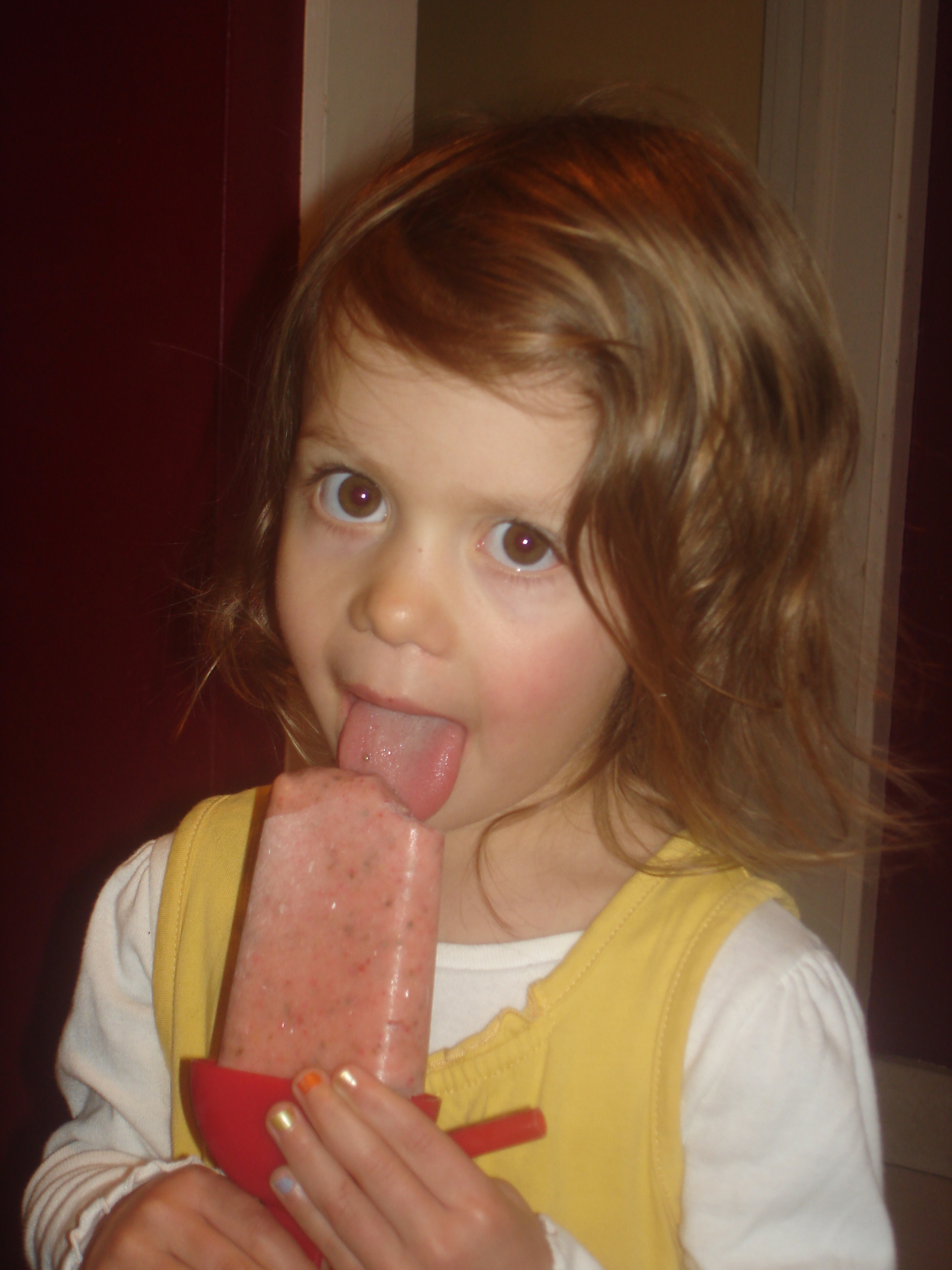 I know you are probably wondering why I’m writing about popsicles in the middle of winter in Colorado! Well, today was one of those beautiful sunny days where despite the lingering snow on the ground you almost forget that it’s winter. And with bulbs starting to break ground it really feels like spring is around the corner. So in honor of this beautiful day, we decided to make smoothie popsicles, one of my daughter’s absolute favorite treats!