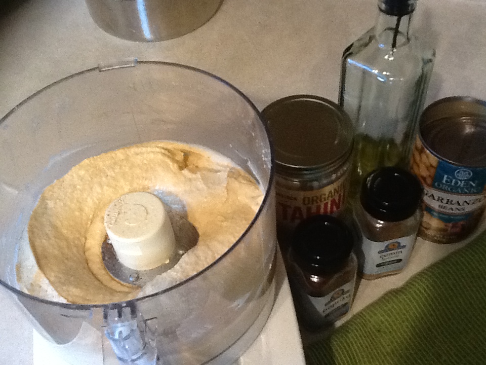 Hummus has become a household staple around here with both my daughter and I eating it around the clock! But when I stopped to think about how much I was spending on it (we would go through a container in 2 days!), I was afraid I would have to give it up, or at least cut it back. Until I decided to go on a quest for good homemade hummus. I had tried to make it in the past and either found that the texture was off or it was too strong on the tahini flavor. But after a few more trials, I’ve made a recipe that works. And instead of a minimum of $3.99 per small 6oz container, this recipes cuts your costs by more than 50%, even if you use organic ingredients! Plus it won’t have preservatives in it like most major brands.